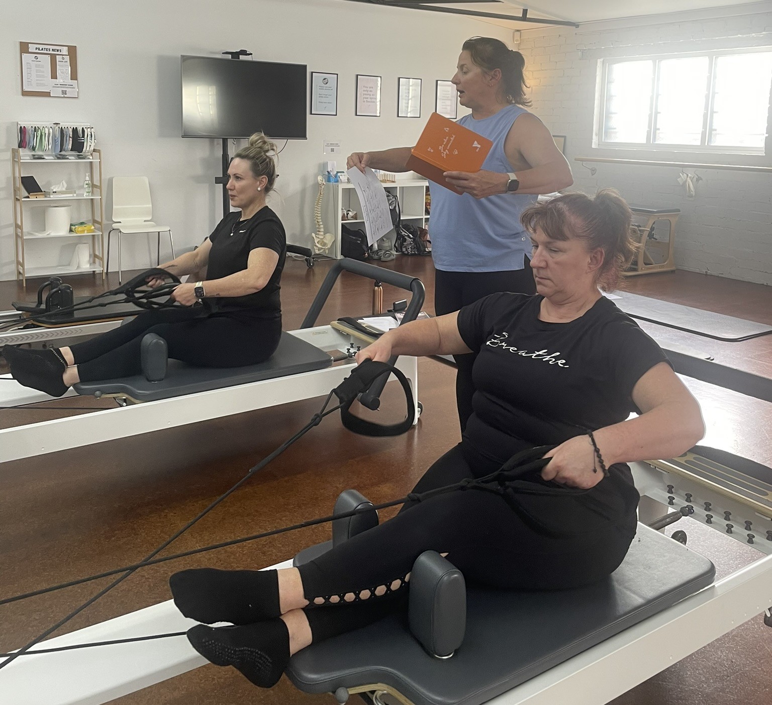 Exercise instruction in the Fundamentals and Reformer repertoire.
